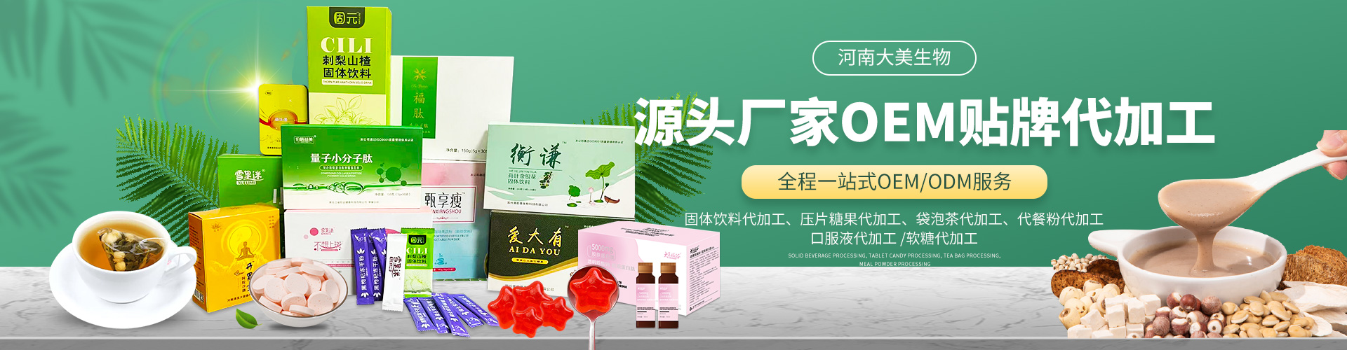 河南大美生物科技股份有限公司是從事顆粒劑、(固體飲料類),壓片糖果代加工等研發和銷售為一體的生產企業。公司依托自身的高科技研發隊伍和營銷團隊,為國內外客戶提供營養食品各劑型和規格的研制、生產、配方設計、批文申報等服務,并為客戶提供多種形式的流通渠道及產品銷售服務工作。 您的要求就是我們的使命!我們的宗旨是與客戶“合作共贏,攜手向前”,共同創造事業新的輝煌!